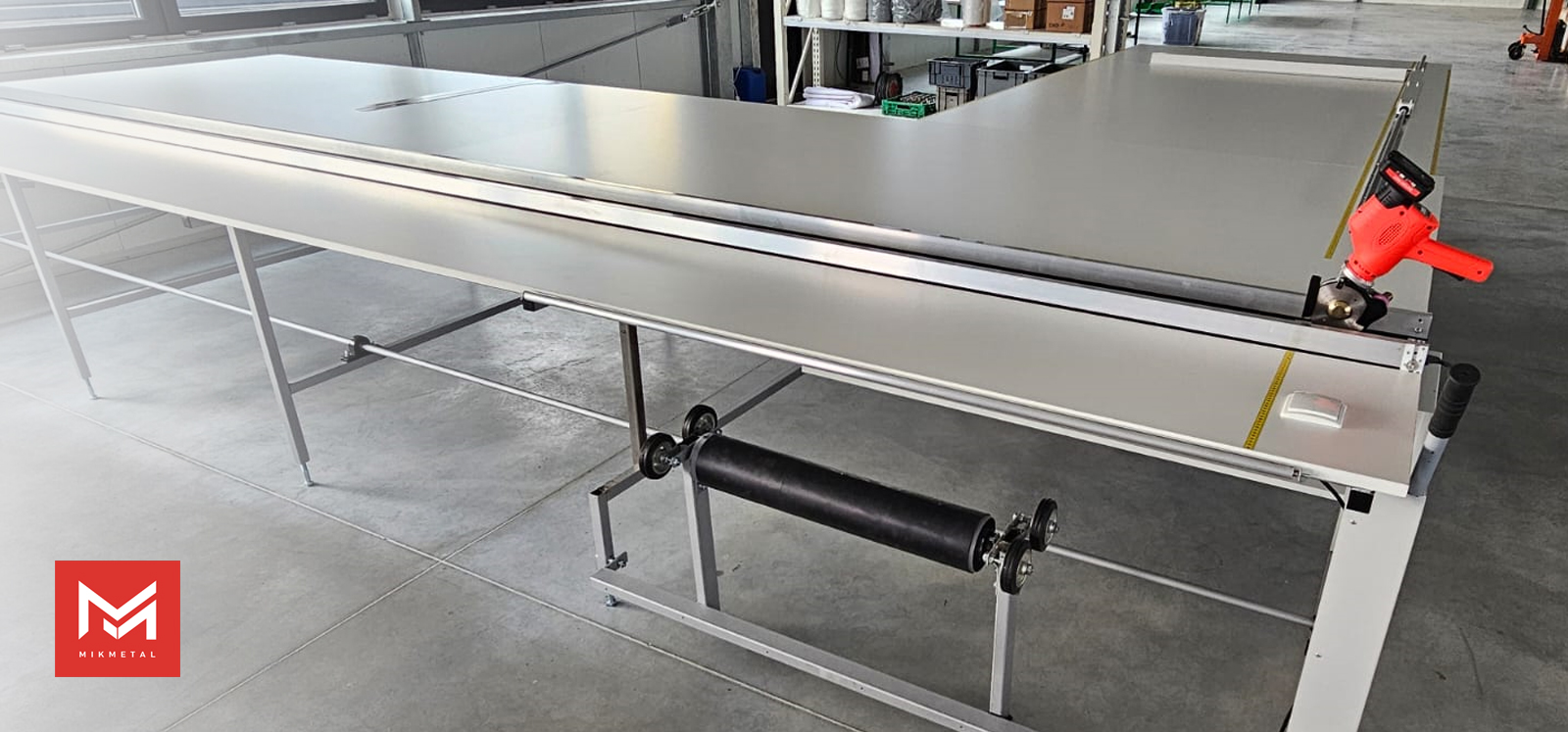 Stół krojczy M3000 to profesjonalne rozwiązanie stworzone z myślą o precyzyjnym cięciu tkanin i materiałów tekstylnych. Dzięki stabilnej stalowej konstrukcji, dużej powierzchni roboczej oraz nowoczesnym systemom cięcia zapewnia najwyższą dokładność i komfort pracy. To idealny wybór dla firm produkujących rolety, odzież czy elementy tekstylne, którym zależy na niezawodnym i wydajnym stanowisku krojczym.