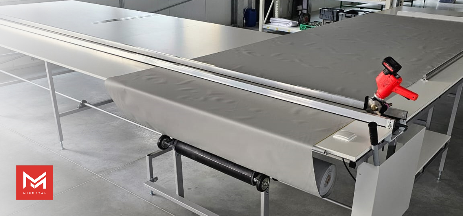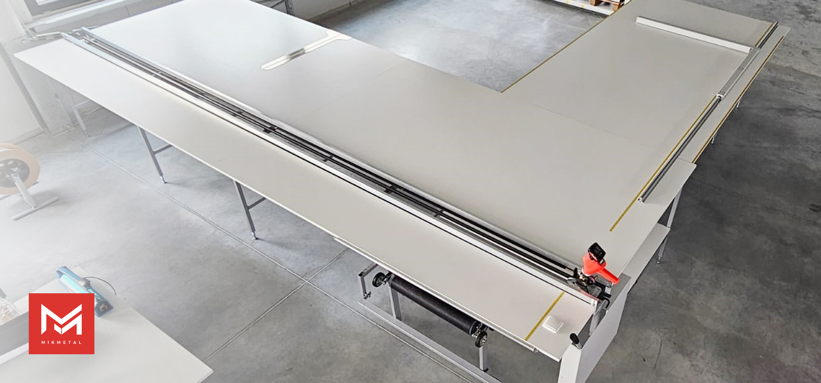 Stół krojczy M3000 to profesjonalne rozwiązanie stworzone z myślą o precyzyjnym cięciu tkanin i materiałów tekstylnych. Dzięki stabilnej stalowej konstrukcji, dużej powierzchni roboczej oraz nowoczesnym systemom cięcia zapewnia najwyższą dokładność i komfort pracy. To idealny wybór dla firm produkujących rolety, odzież czy elementy tekstylne, którym zależy na niezawodnym i wydajnym stanowisku krojczym.